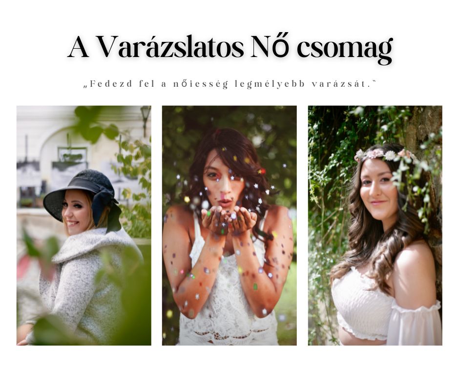 A Varázslatos Nő Élményfotózási csomagunk - Ez az élményfotózás a játékos, bájos, ragyogó oldaladat hívja elő – azt a pillanatot, amikor megéled, hogy Te Magad vagy a varázs. Tökéletes választás, ha szeretnéd megélni a női energiád szelíd, mégis magával ragadó oldalát. Ez a csomag azoknak a nőknek szól, akik szeretnék újra felfedezni nőiességüket, önbizalmukat és kisugárzásukat. A Varázslatos Nő csomag nemcsak egy fotózás – egy élmény, egy önismereti utazás ahol újra felfedezheted, milyen különleges nő vagy valójában.