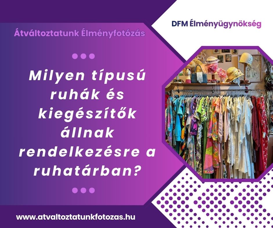 Egy élményfotózás több, mint egy egyszerű fotózás – itt minden Rólad szól: a stílusodról, az egyéniségedről, és arról az élményről, amit csak te élhetsz át. A mi ruhatárunk igazi kincsesláda, tele színekkel, textúrákkal és ötletekkel, hogy minden fotózás teljesen egyedi legyen.